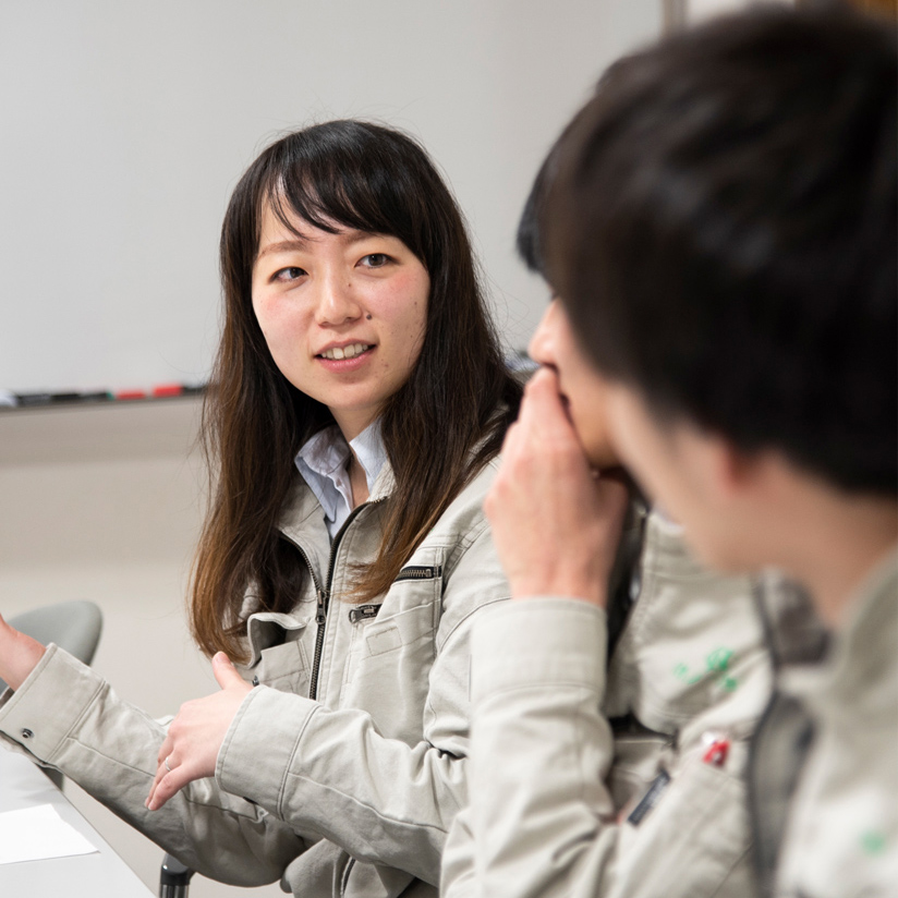 「私は目標としている上司がいるのが大きいです。設計の技術はもちろんですが、お客様への説明が的確なうえ上手く、見ていてかっこいいんですよ。自分も少しでもその方に近づきたいという思いがあるから頑張れています」