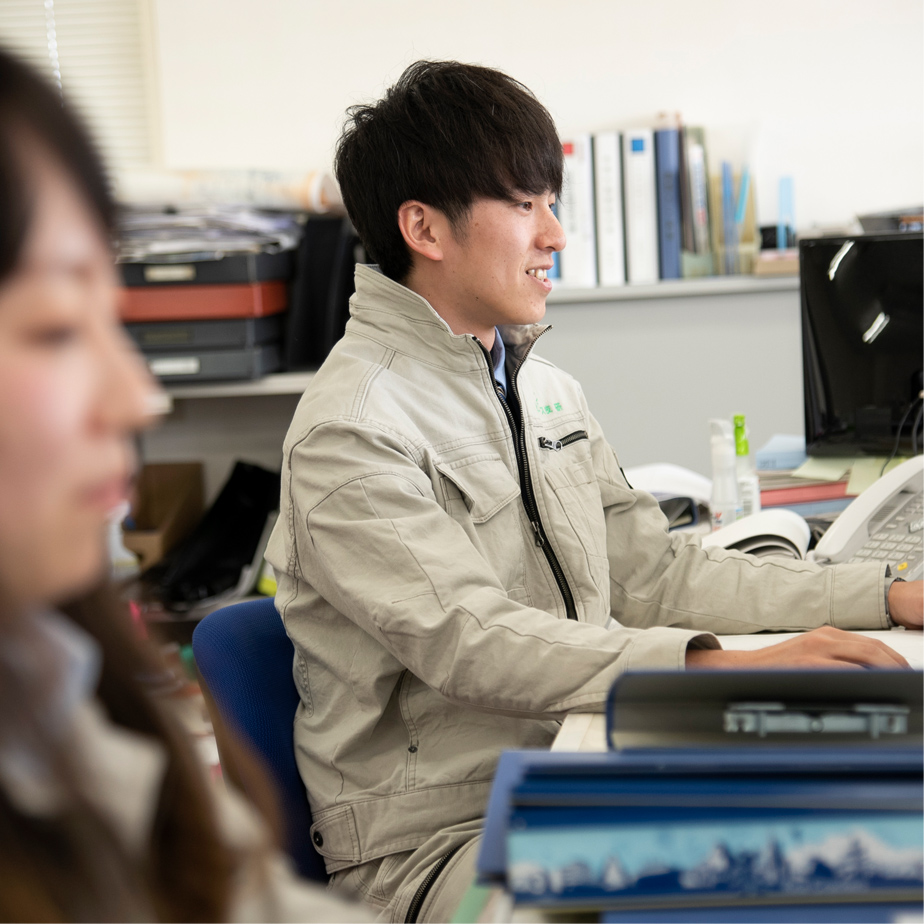 「みんな出身校は同じなんですよね。私は卒業後、東京に本社を置くゼネコンに入社しました。港湾の工事をメインに行う会社で、羽田空港や茨城港、沖縄軍港などの工事をしていたのですが、去年、Uターンしてここに入ったんです」